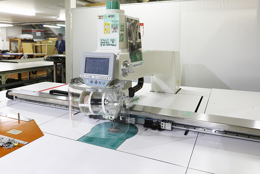 大型の産業用縫製品は、工業用ミシンや大型ウエルダーで製造します。その大型生地を振り回せる広い工場スペースを有しており、さまざまな大型製品をつくり続けています。